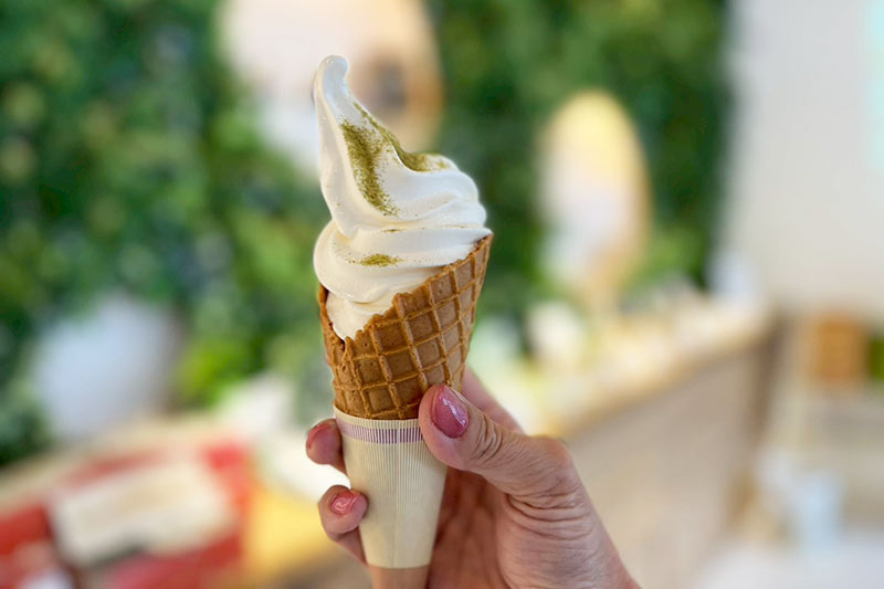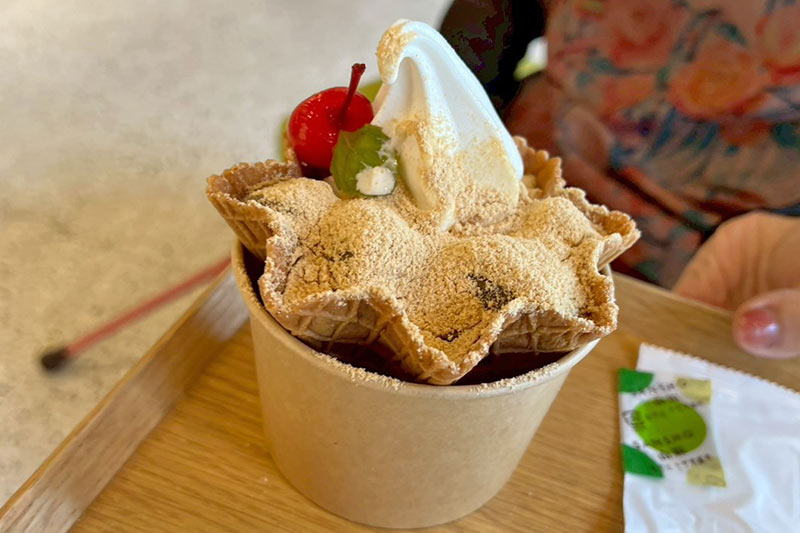 山椒トッピングのソフトクリーム・わらび餅ソフト